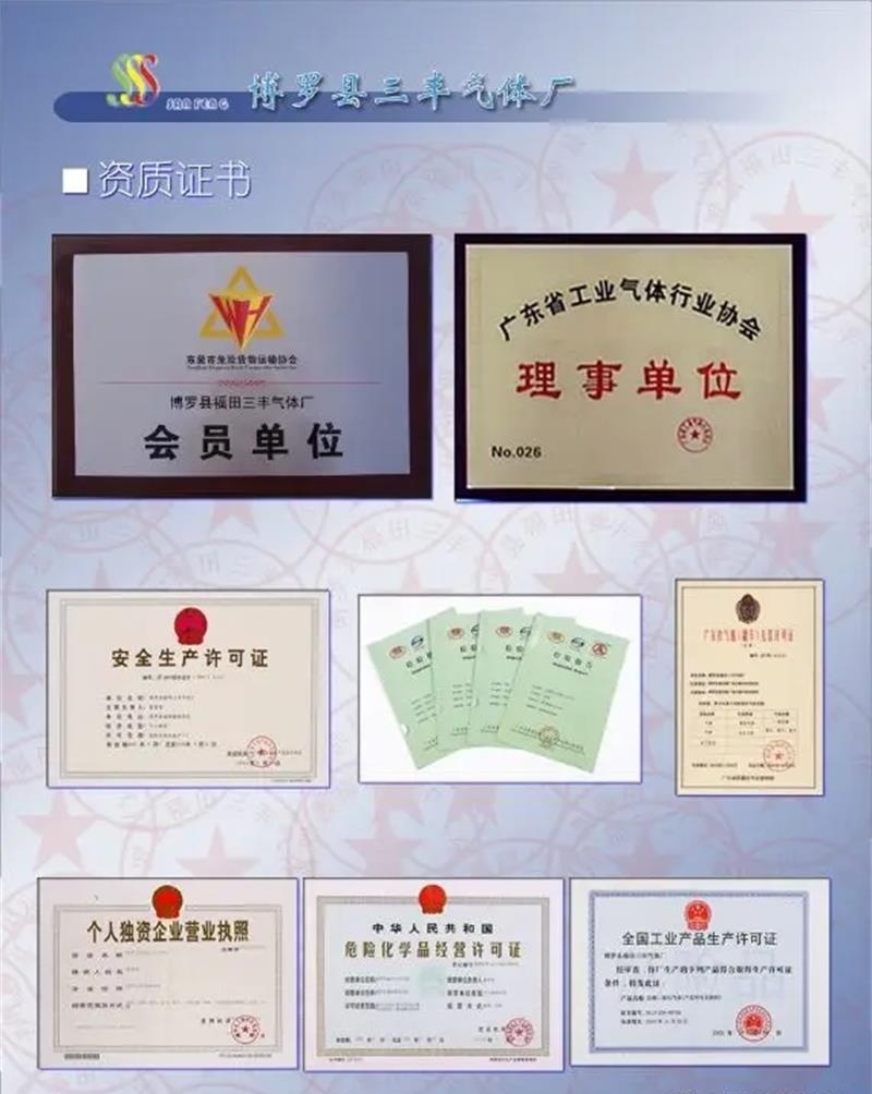 企业拥有气体专业人员占全厂从业人员的50%,与合作公司一起建有大型空分5套其设备总值超过5个亿,配备了液氧、液氮、液氩、二氧化碳大型低温液体储槽,整体储存能力达到3000多吨,还配备有相关的气体充装设备,日生产量到5000支。具有生产液态气体、特种气体、混合气体、高纯气体的能力。钢瓶处理系统、气体检测设备齐全,拥有雄厚实力的配送车队,低温液体槽车20多台。