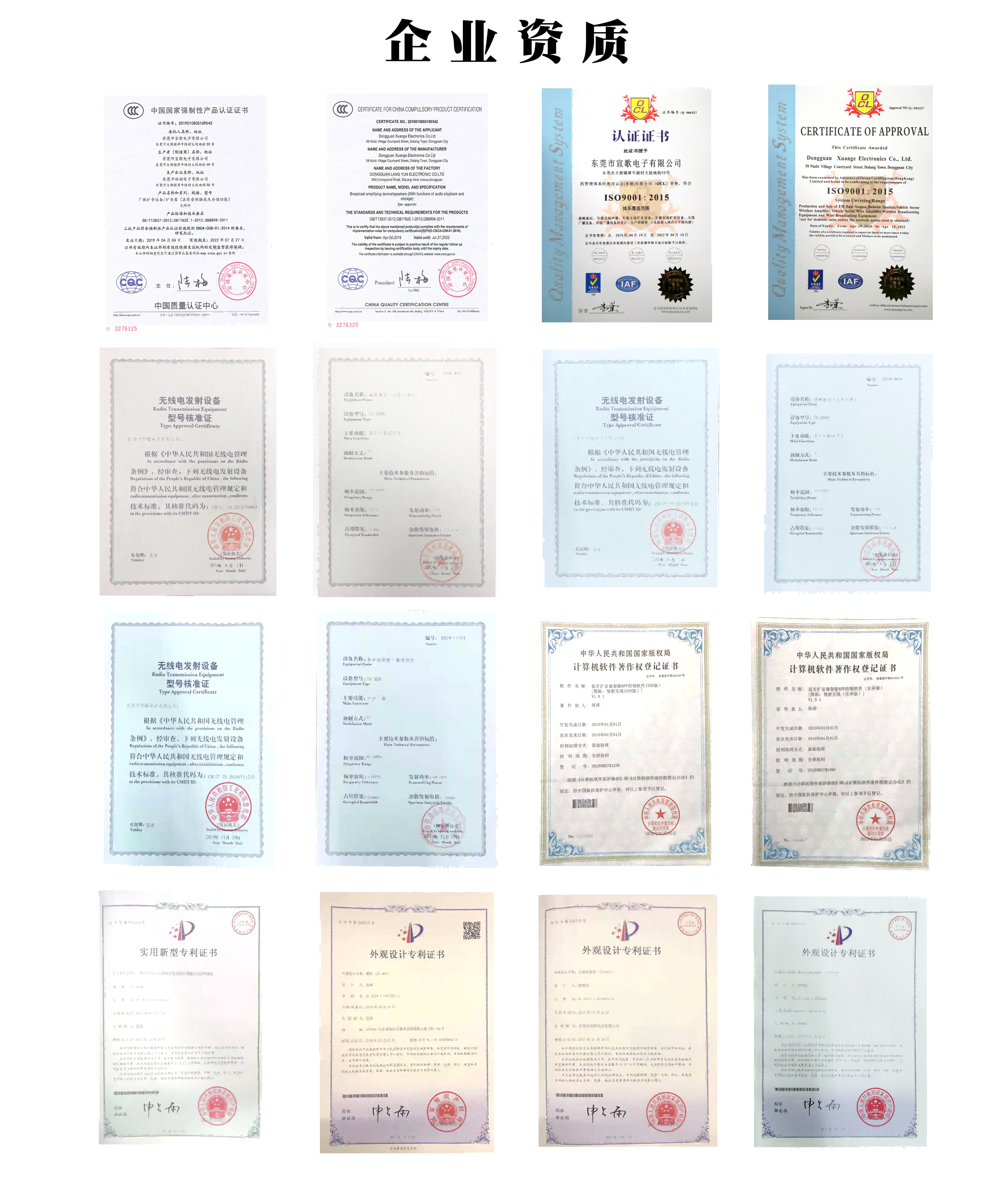 宣歌电子已获得国际级IS09001质量认证体系包括3C强制认证、检测报告、型号核准证等多项检测认证,产品应用于国内各种大中小型工程并出口至东南亚,欧美等多个国家。